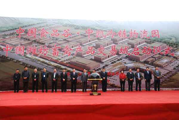 11月8日,中国食品谷中凯冷链物流园中国潍坊畜禽产品交易城项目启用仪式现场。